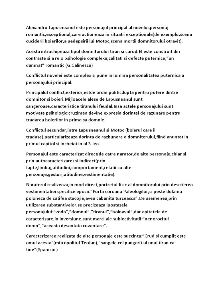 Caracterizarea Lui Lapusneanul