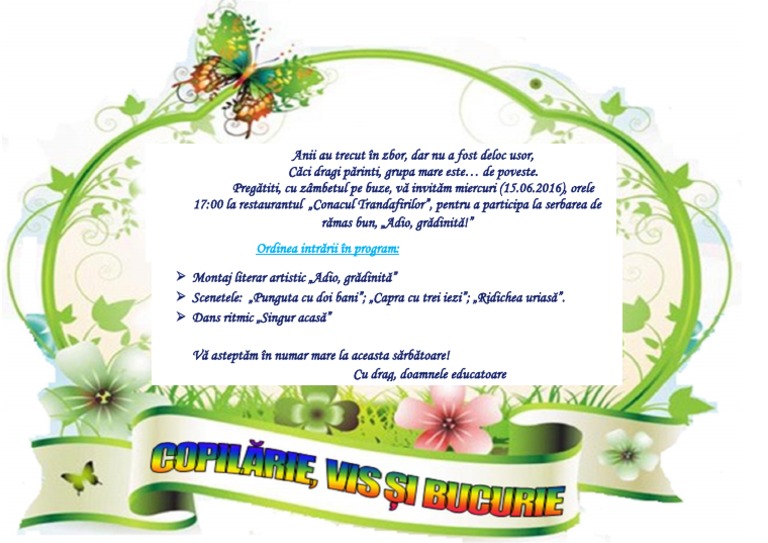 Invitatie La Serbare Grădinițe In Mureș