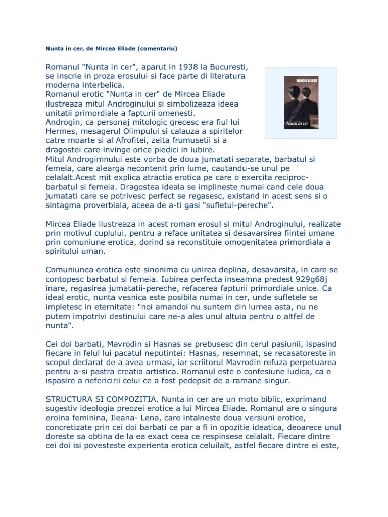 Doc Nunta In Cer Comentariu Literar Romanul Erotic De Mircea