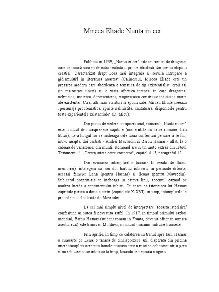 Referat Nunta In Cer De Mircea Eliade 334421 Graduo