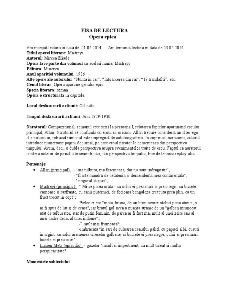 Fisa De Lectura Maitreyi