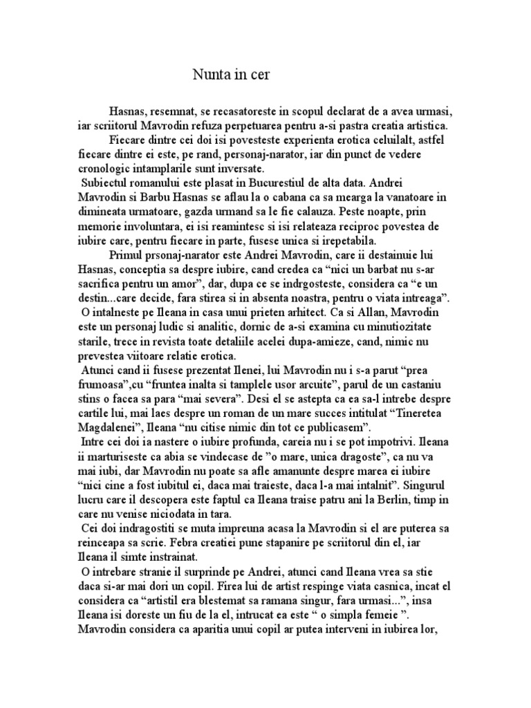 Doc Nunta In Cer Comentariu Literar Romanul Erotic De Mircea