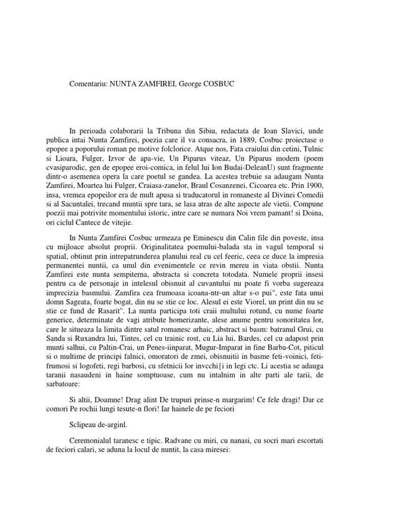 Comentariu George Cosbuc Nunta Zamfirei 327474 Graduo
