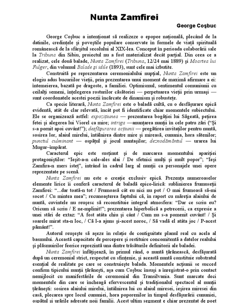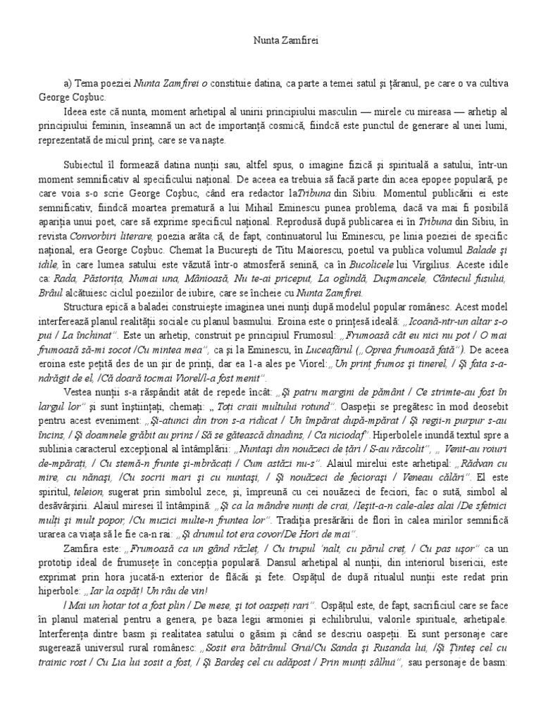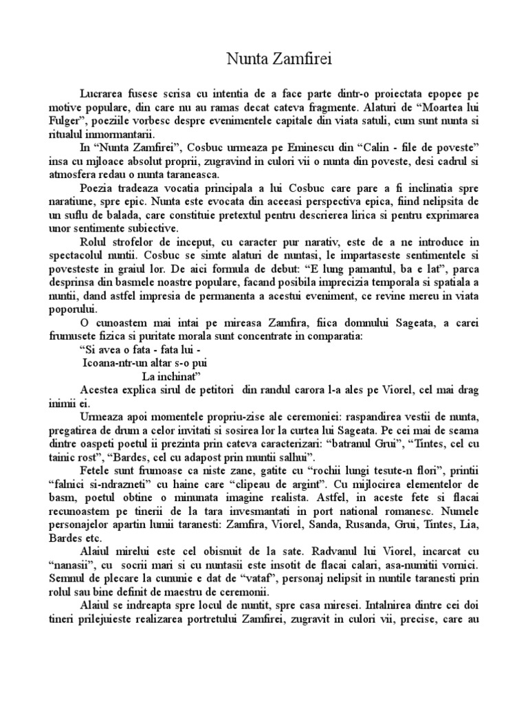 Comentariu Nunta Zamfirei De George Cosbuc Famouswhy Ro