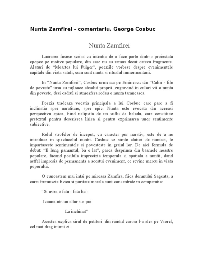 Referat George Cosbuc Nunta Zamfirei Nunta Zamfirei Textul
